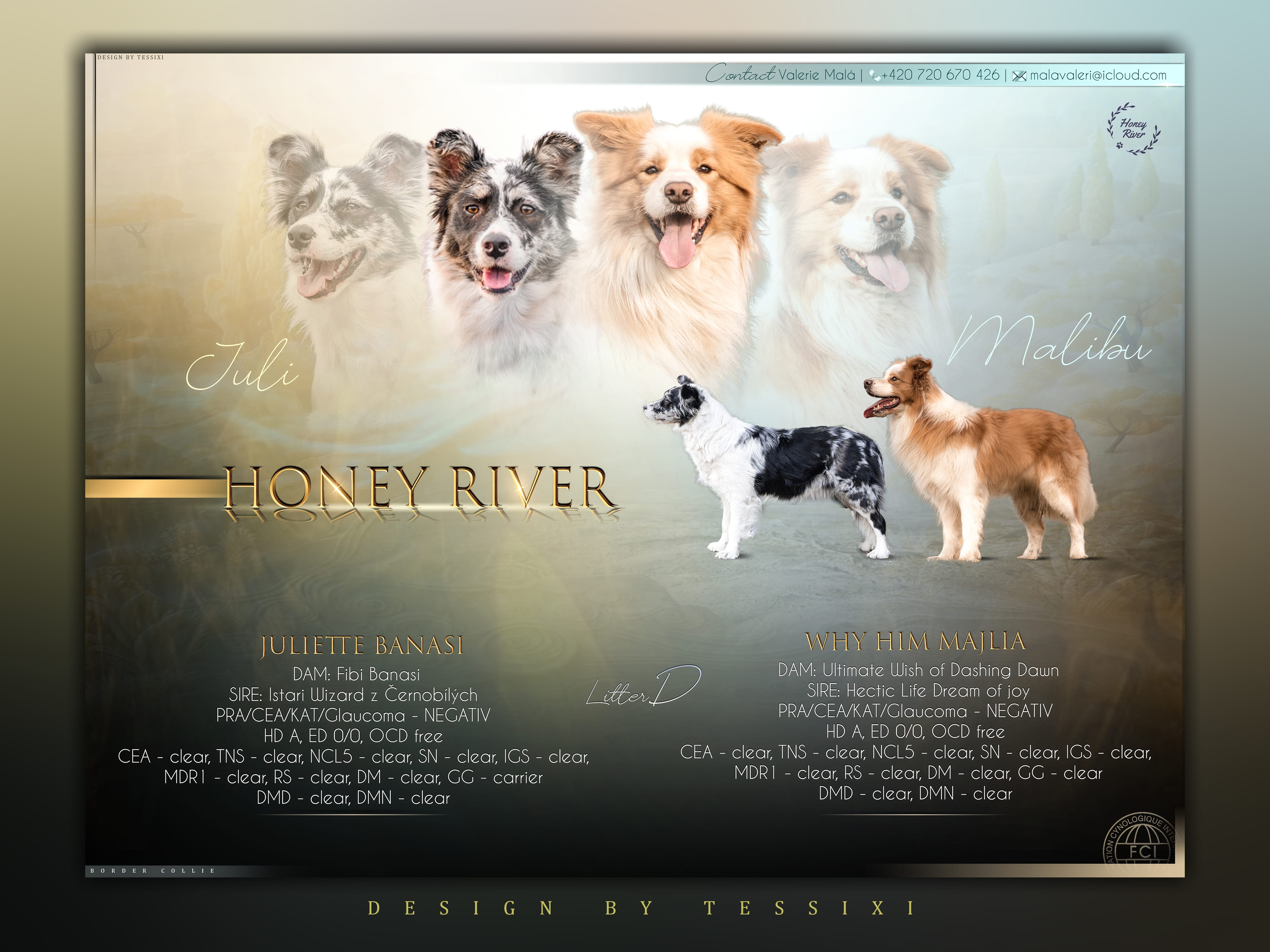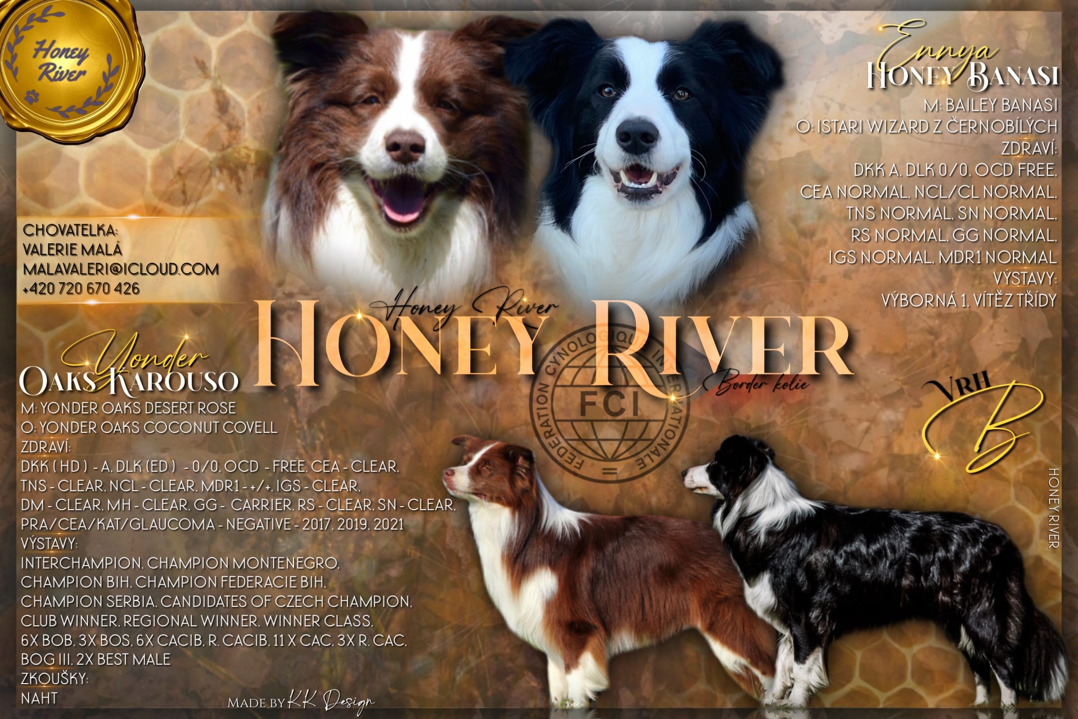 Dlouhou dobu to byl můj sen mít border kolii a když jsem si pořídila naši první borderku „Honey“ tak jsem věděla že se i v budoucnu budu chtít borderkám věnovat a mít i svoji vlastní chovatelskou stanici. S border koliema se věnujeme hlavně výstavám, ale jezdíme také k ovečkám a na agility. První dva vrhy jsme měli pod klubem BCCCZ, ale přešli jsme pod klub KCHMPP kde budou všechny naše budoucí vrhy.